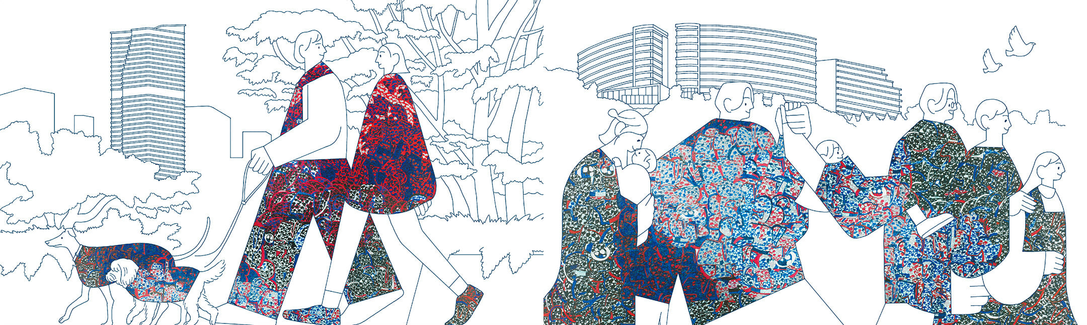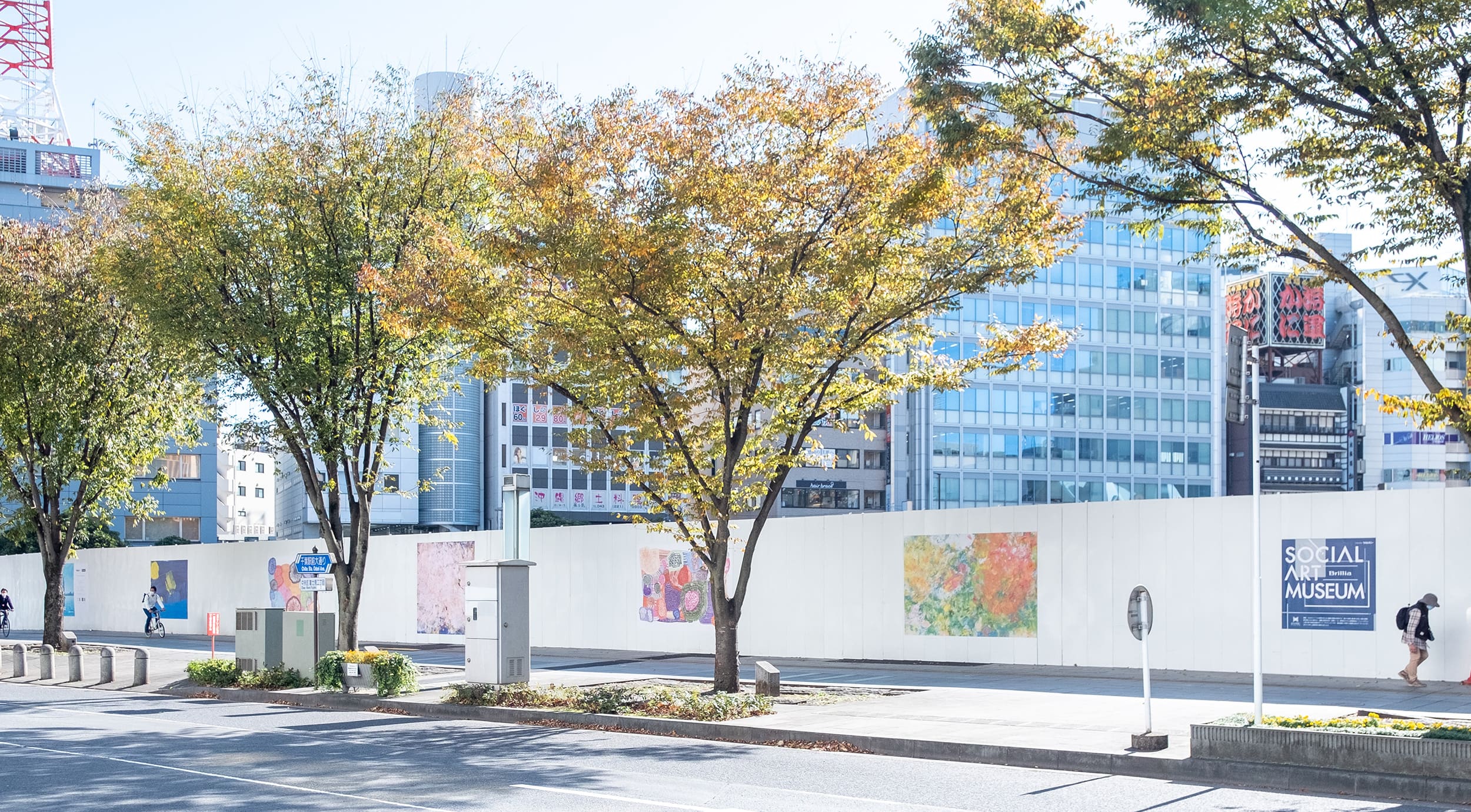建設現場の仮囲いを鮮やかに彩り、街と人をつなぎます。