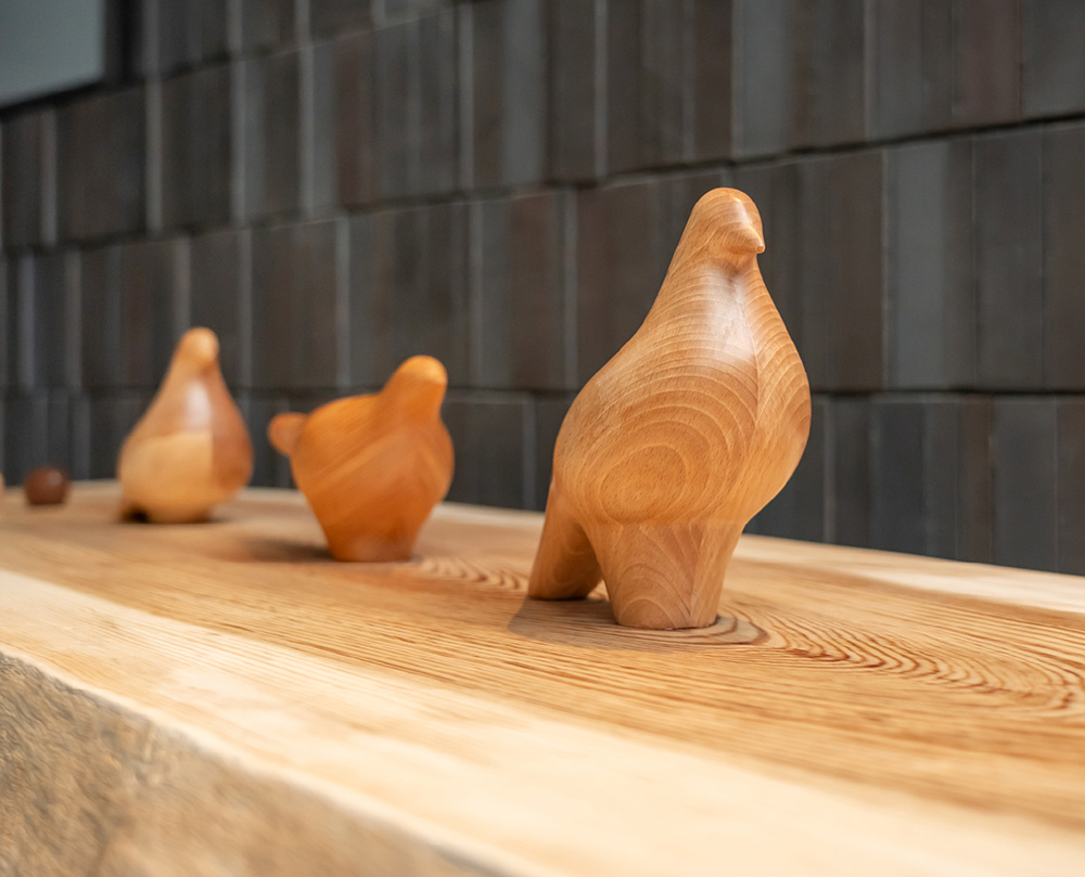 久世 木のオブジェに触れて音が鳴るというのはちょっとした驚きがあるでしょうし、僕たちが手で削ったり磨いたりしてできた作品ですので、手づくりの温かみを感じていただけると思います。暮らしのなかのアートということで、居住者の方々の心が和むようなものでありたいと思います。