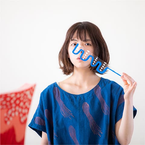 A:ペンキを使い、のびのびと全身で色を塗っていると、自分も彼らと海中を泳いでいるような自由な気持ちになりました。実際に設置してみると、作品のやわらかい形が端然と立ち並ぶビルのなかで際立ち、面白いと思いました。空間に降り注ぐ夏の日差しが作品の季節感とも相まって、爽やかな雰囲気を作り出せたかと思います。普段、この付近を通りがかる方々に涼しい気持ちになっていただければ嬉しいです。