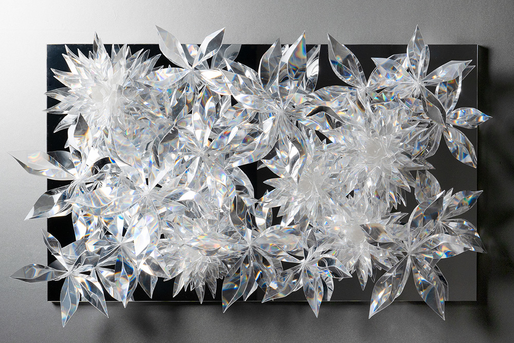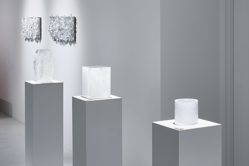 本展のタイトルである“Light Crystallized”(光の結晶化)は幅広く光のクリエイションを探求する松尾の近年のテーマであり、現象として消えゆく形のない光やその輝きを一つ一つアー卜として物質化し、形にすることを意味します。
