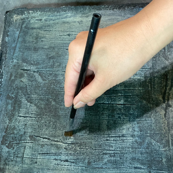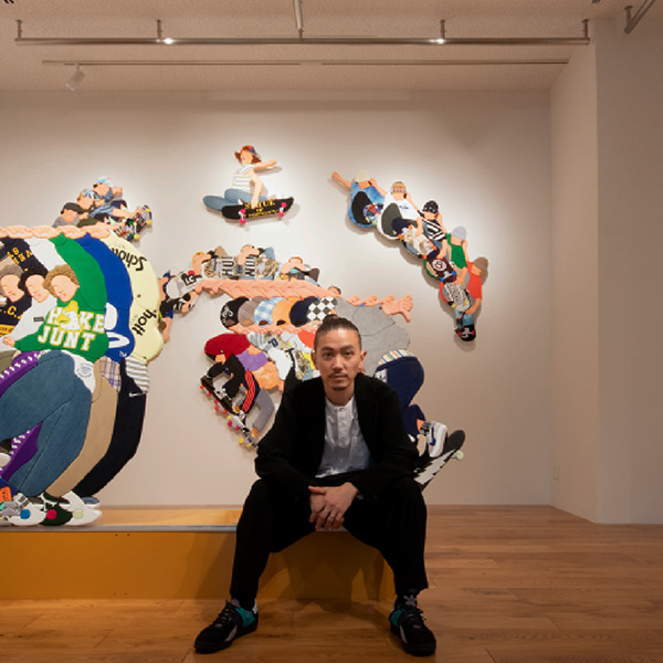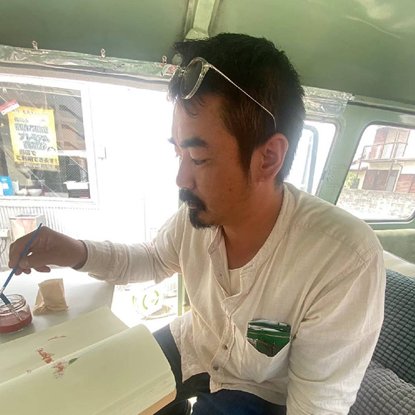 革小物職人として働く傍ら新たな表現の探求のためアート作品の制作を行う。グラフィティやストリートアートを坊彿とさせるオリジナルの唐草パターンや、コミカルな人物などが混在する景色を通して、自分が理想とする「心の持ち方、在り方」を表現。