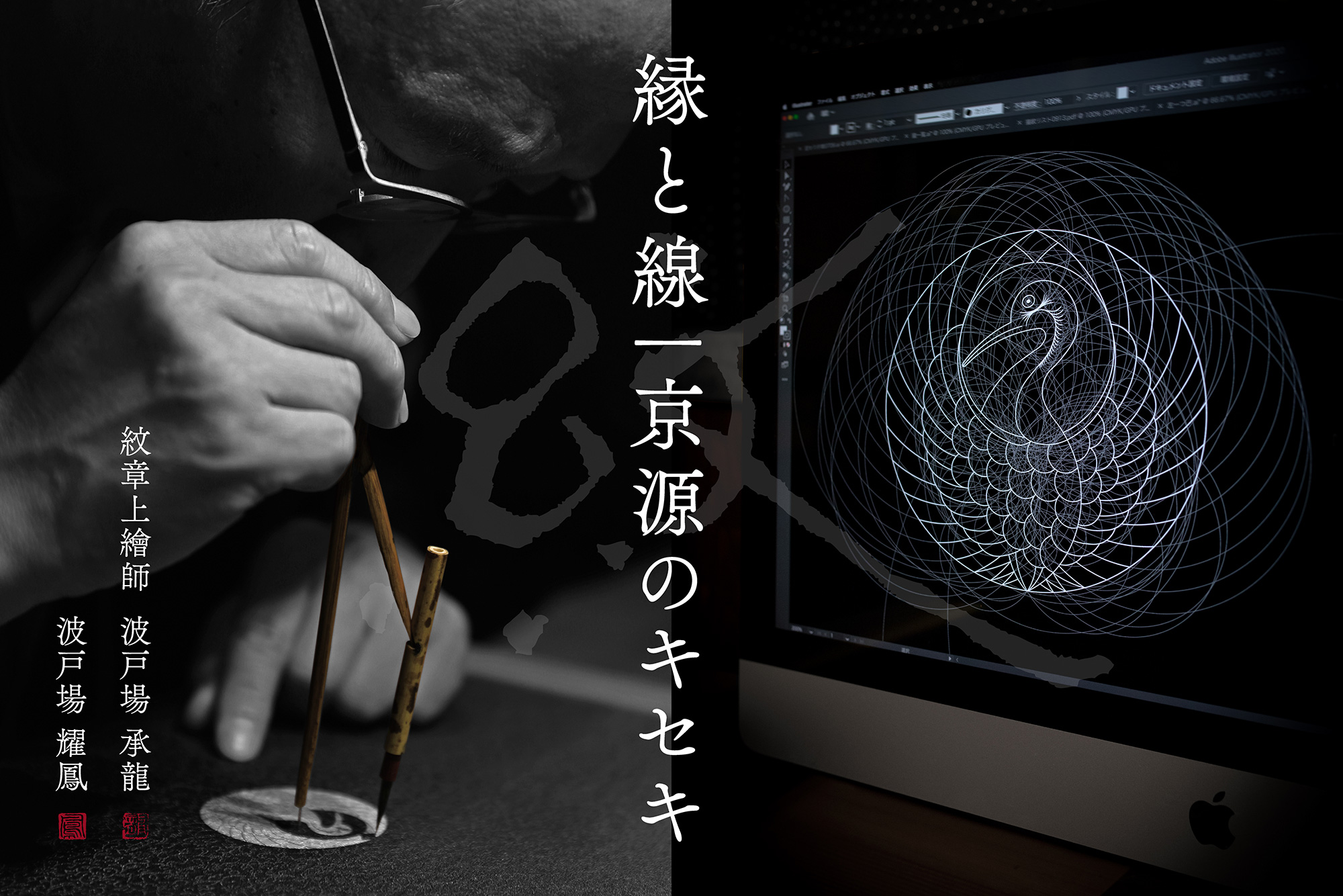 2025年で紋章上繪師の道に入り50年という節目を迎える京源三代目 波戸場承龍。20年来の親交があり、本展覧会の立役者でもある御縁の元、手ぬぐい専門店 株式会社かまわぬ専務取締役 高橋基朗氏をお招きし、本展覧会に向けて波戸場承龍・耀鳳親子がそれぞれデザインした「蛇の目紋」手ぬぐい対決の裏話や波戸場承龍の50年の歩みを振り返るトークイベントを開催いたします。